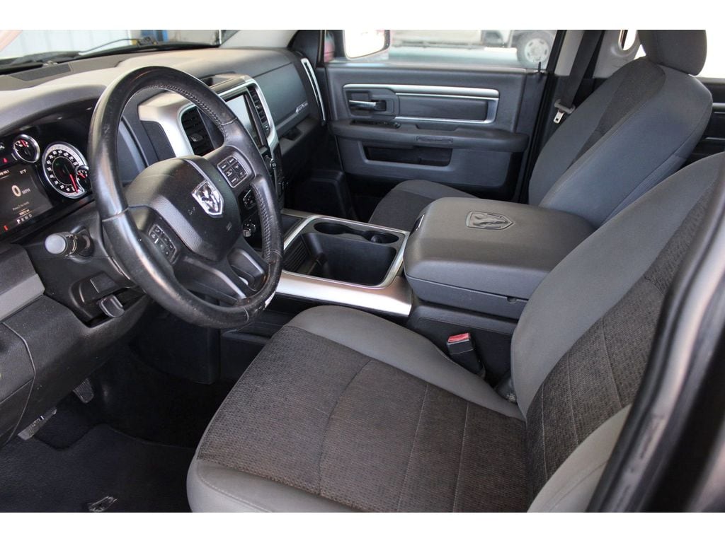The vehicle offers Automatic Climate Control for personalized comfort. The installed navigation system will keep you on the right path. Never get into a cold vehicle again with the remote start feature on this Ram 1500. The rear parking assist technology on this vehicle will put you at ease when reversing. The system alerts you as you get closer to an obstruction. Protect it from unwanted accidents with a cutting edge backup camera system. The vehicle is equipped with the latest generation of XM/Sirius Radio. This unit features a hands-free Bluetooth phone system. Enjoy the incredible handling with the rear wheel drive on this unit. The Ram 1500 has a V8, 5.7L high output engine. Greater towing safety becomes standard with the installed trailer brake. Set the temperature exactly where you are most comfortable in this 1/2 ton pickup. The fan speed and temperature will automatically adjust to maintain your preferred zone climate.